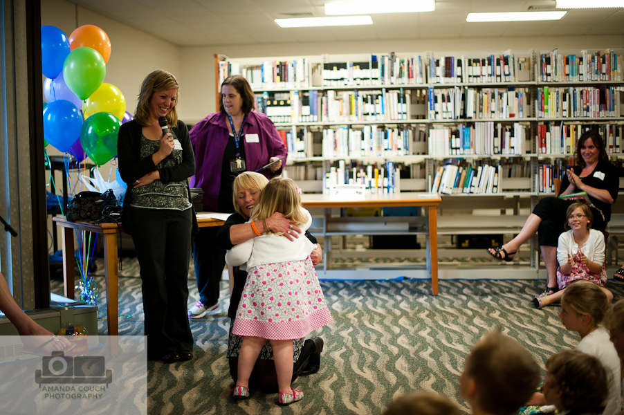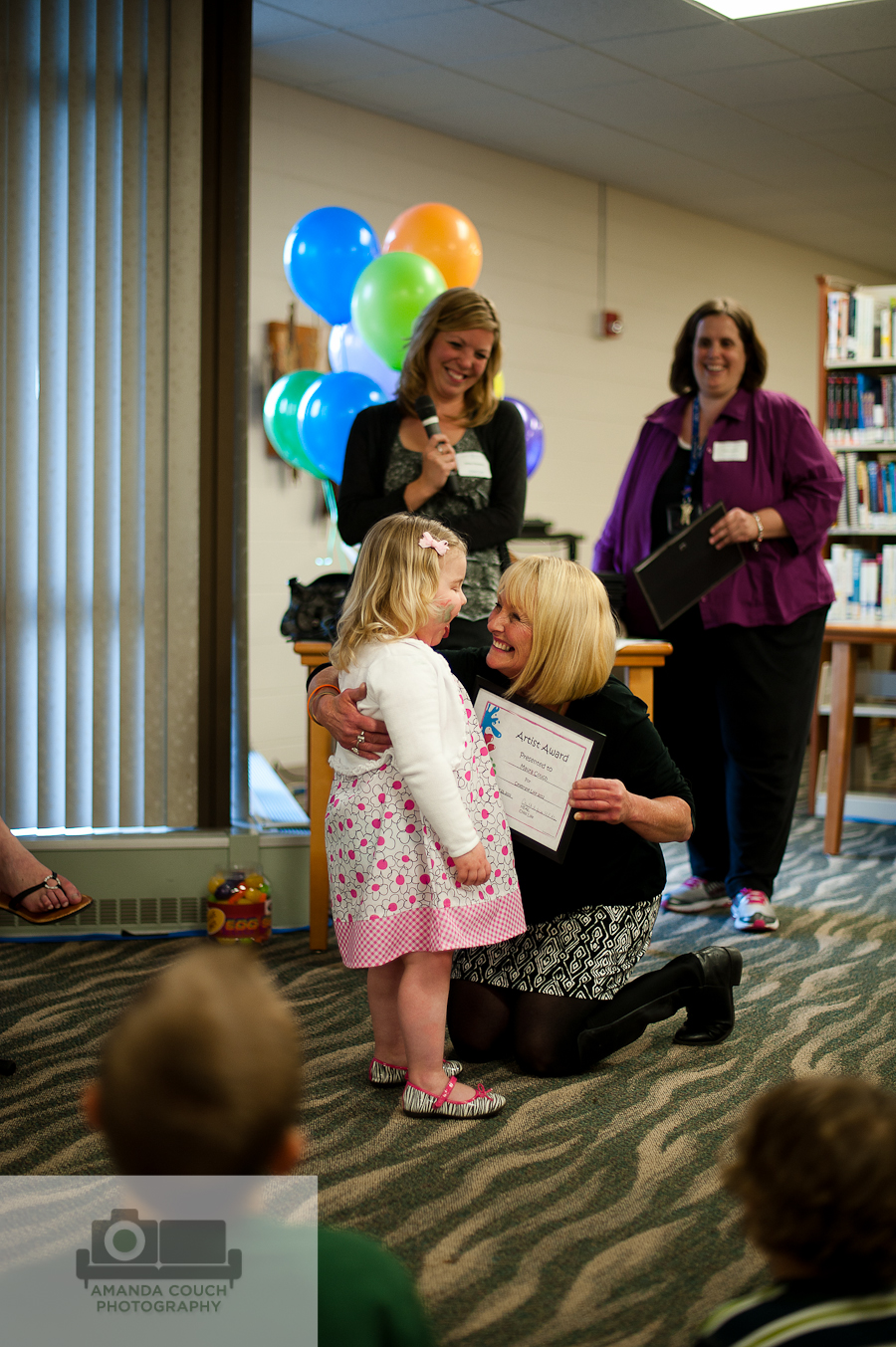 If you know Maura, you know how stingy she is with hugs and affection (unless you are her Uncle Todd!) and how shy she can be in a crowded room, so I wasn’t sure what she would do when they called her up for her recognition, but Kim and Child Life at St. Vincent’s are magic and there she went – open arms and all.